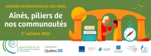 Dans le cadre de la Journée internationale des aînés, nous avons collaboré avec la FADOQ, l’Association québécoise des retraité(e)s des secteurs public et parapublic (AQRP), l’AQDR , l’AREQ, Proche aidance Québec, et Intergénérations Québec pour développer un message commun. Le thème « Aînés, piliers de nos communautés» sur lequel nous nous sommes arrêtés vise à souligner le rôle inestimable que jouent les aînés dans nos familles, nos entourages, et nos collectivités. Le 1er octobre prochain, joignez-vous à nous pour faire rayonner ce message 🧡