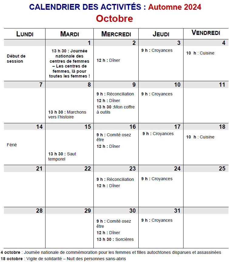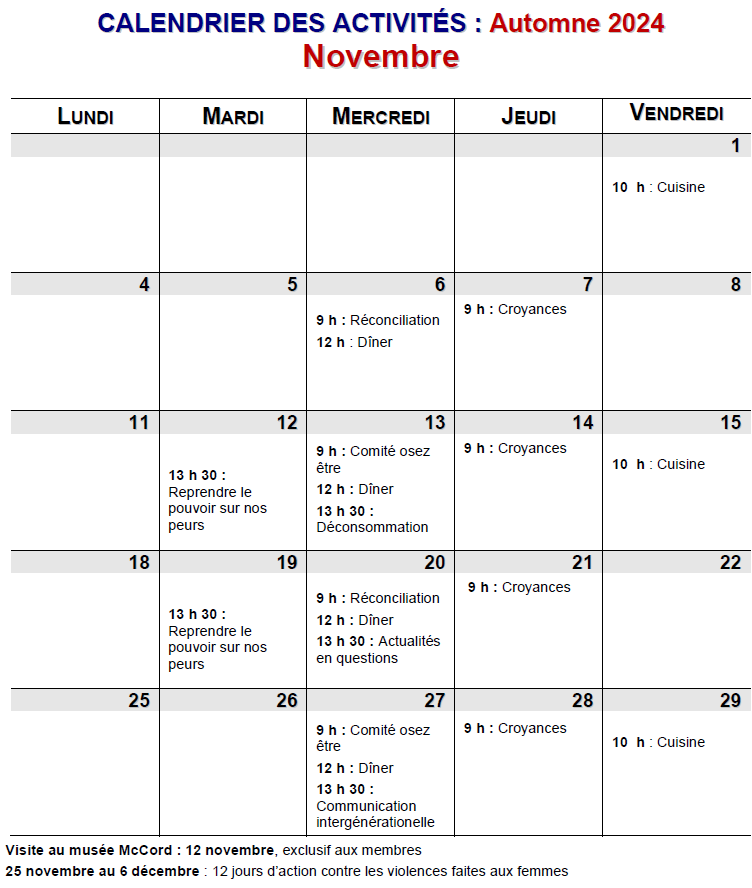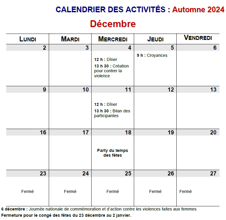 Nous avons trois sessions d’activités par année, soit à l’automne, à l’hiver et au printemps.